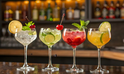 Custom drink stations serving juices, mocktails, and welcome drinks.